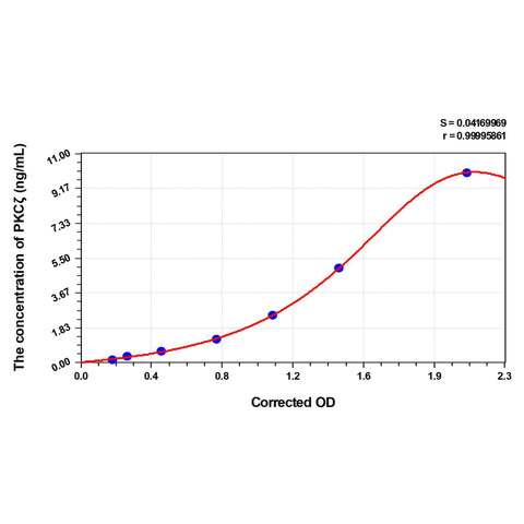 | Test principle | The test principle applied in this kit is Sandwich enzyme immunoassay. The microtiter plate provided in this kit has been pre-coated with an antibody specific to Mouse PKCζ. Standards or samples are added to the appropriate microtiter plate wells then with a biotin-conjugated antibody specific to Mouse PKCζ. Next, Avidin conjugated to Horseradish Peroxidase (HRP) is added to each microplate well and incubated. After TMB substrate solution is added, only those wells that contain Mouse PKCζ, biotin-conjugated antibody and enzyme-conjugated Avidin will exhibit a change in color. The enzyme-substrate reaction is terminated by the addition of sulphuric acid solution and the color change is measured spectrophotometrically at a wavelength of 450nm ± 10nm. The concentration of Mouse PKCζ in the samples is then determined by comparing the OD of the samples to the standard curve. |