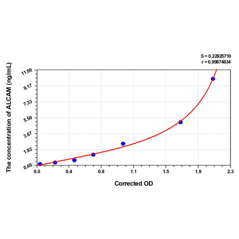 | Test principle | The test principle applied in this kit is Sandwich enzyme immunoassay. The microtiter plate provided in this kit has been pre-coated with an antibody specific to Rat ALCAM. Standards or samples are added to the appropriate microtiter plate wells then with a biotin-conjugated antibody specific to Rat ALCAM. Next, Avidin conjugated to Horseradish Peroxidase (HRP) is added to each microplate well and incubated. After TMB substrate solution is added, only those wells that contain Rat ALCAM, biotin-conjugated antibody and enzyme-conjugated Avidin will exhibit a change in color. The enzyme-substrate reaction is terminated by the addition of sulphuric acid solution and the color change is measured spectrophotometrically at a wavelength of 450nm ± 10nm. The concentration of Rat ALCAM in the samples is then determined by comparing the OD of the samples to the standard curve. |