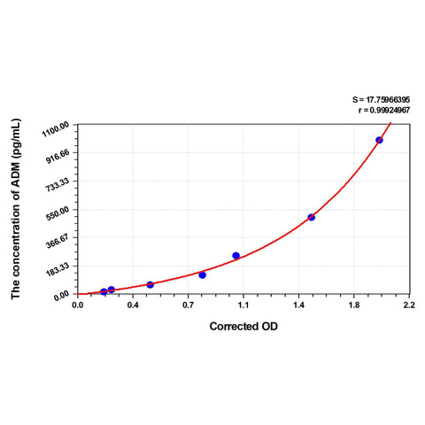 | Test principle | The test principle applied in this kit is Sandwich enzyme immunoassay. The microtiter plate provided in this kit has been pre-coated with an antibody specific to Dog ADM. Standards or samples are added to the appropriate microtiter plate wells then with a biotin-conjugated antibody specific to Dog ADM. Next, Avidin conjugated to Horseradish Peroxidase (HRP) is added to each microplate well and incubated. After TMB substrate solution is added, only those wells that contain Dog ADM, biotin-conjugated antibody and enzyme-conjugated Avidin will exhibit a change in color. The enzyme-substrate reaction is terminated by the addition of sulphuric acid solution and the color change is measured spectrophotometrically at a wavelength of 450nm ± 10nm. The concentration of Dog ADM in the samples is then determined by comparing the OD of the samples to the standard curve. |