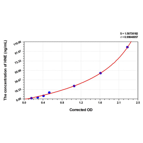| Test principle | The test principle applied in this kit is Sandwich enzyme immunoassay. The microtiter plate provided in this kit has been pre-coated with an antibody specific to Rat HNE. Standards or samples are added to the appropriate microtiter plate wells then with a biotin-conjugated antibody specific to Rat HNE. Next, Avidin conjugated to Horseradish Peroxidase (HRP) is added to each microplate well and incubated. After TMB substrate solution is added, only those wells that contain Rat HNE, biotin-conjugated antibody and enzyme-conjugated Avidin will exhibit a change in color. The enzyme-substrate reaction is terminated by the addition of sulphuric acid solution and the color change is measured spectrophotometrically at a wavelength of 450nm ± 10nm. The concentration of Rat HNE in the samples is then determined by comparing the OD of the samples to the standard curve. |