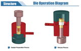 | Pressing force | Φ7-3mm (max. 2.5 Tons), Φ10-5mm (max. 4 Tons), Φ20-10mm (max. 10 Tons ) |