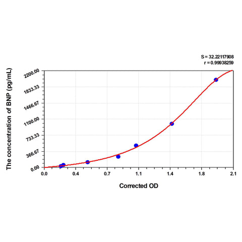 | Test principle | The test principle applied in this kit is Sandwich enzyme immunoassay. The microtiter plate provided in this kit has been pre-coated with an antibody specific to Sheep BNP. Standards or samples are added to the appropriate microtiter plate wells then with a biotin-conjugated antibody specific to Sheep BNP. Next, Avidin conjugated to Horseradish Peroxidase (HRP) is added to each microplate well and incubated. After TMB substrate solution is added, only those wells that contain Sheep BNP, biotin-conjugated antibody and enzyme-conjugated Avidin will exhibit a change in color. The enzyme-substrate reaction is terminated by the addition of sulphuric acid solution and the color change is measured spectrophotometrically at a wavelength of 450nm ± 10nm. The concentration of Sheep BNP in the samples is then determined by comparing the OD of the samples to the standard curve. |