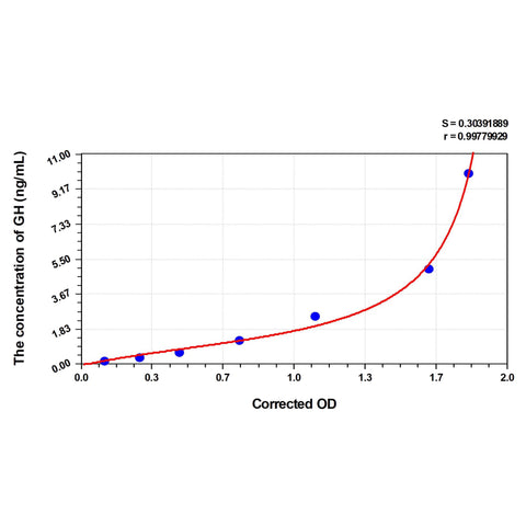 | Test principle | The test principle applied in this kit is Sandwich enzyme immunoassay. The microtiter plate provided in this kit has been pre-coated with an antibody specific to Zebrafish GH. Standards or samples are added to the appropriate microtiter plate wells then with a biotin-conjugated antibody specific to Zebrafish GH. Next, Avidin conjugated to Horseradish Peroxidase (HRP) is added to each microplate well and incubated. After TMB substrate solution is added, only those wells that contain Zebrafish GH, biotin-conjugated antibody and enzyme-conjugated Avidin will exhibit a change in color. The enzyme-substrate reaction is terminated by the addition of sulphuric acid solution and the color change is measured spectrophotometrically at a wavelength of 450nm ± 10nm. The concentration of Zebrafish GH in the samples is then determined by comparing the OD of the samples to the standard curve. |