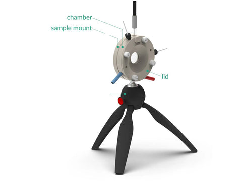 The Nonlinear Spectro-EFC cell elements are constructed from materials that are inert to the sample environment (PEEK, Fluorocarbons), and either aqueous (FKM) or organic solvent (FFKM) compatible O-Rings can be installed to meet electrolyte requirements. The construction is gas-tight and gas purging of the electrolyte via an external reservoir can be used when the removal and exclusion of contaminants such as oxygen or the introduction of a gas phase reagent is required.