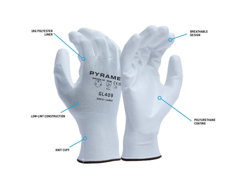 PYRAMEX Dipped GL409 - Polyurethane Gloves, PK of 12