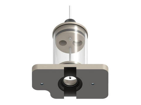 This is a stationary solution voltammetry cell for simultaneous measurements of electrochemical response and Quartz Crystal Microbalance sensing with Dissipation Monitoring (QCM-D). This QCM EC 15 mL module has been developed for a specific equipment supplied by Biolin Scientific. It is compatible with QSense Explorer and QSense Analyzer system. In this configuration, a thin film of measured material is deposited directly on top of the QCM sensor (QSensor). The QCM EC cell is mounted on one of the QCM bases of QSense Explorer or QSense Analyzer system, while counter or/and reference electrodes are mounted in a top casing (either 2-, or 3-electrode setup). The cell elements are constructed with materials that are inert to the sample (glass and PEEK). It well fits aqueous (EPDM O-Rings) and organic solvent (FFKM O-Rings) electrolyte requirements. The construction is gas-tight and can be used when the removal and exclusion of contaminants such as oxygen and water is required by bubbling of an inert gas through the electrolyte.