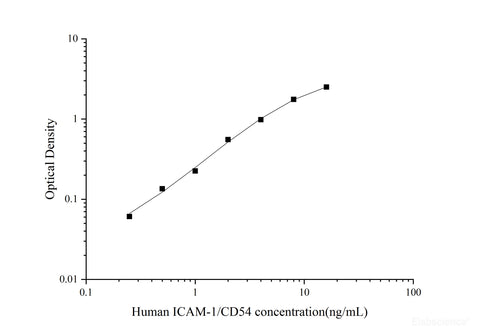 This ELISA kit uses the Sandwich-ELISA principle. The micro ELISA plate provided in this kit has been pre-coated with an antibody specific to Human ICAM-1. Samples (or Standards) and Horseradish Peroxidase (HRP) linked antibody specific for Human ICAM-1 are added to the micro ELISA plate wells. Human ICAM-1 in samples (or standards) combines with the coated antibody and HRP linked detection antibody specific to ICAM-1. Excess conjugate and unbound sample or standard are washed from the plate. The substrate solution is added to each well. The enzyme-substrate reaction is terminated by the addition of stop solution and the color turns yellow. The optical density (OD) is measured spectrophotometrically at a wavelength of 450±2 nm. The concentration of Human ICAM-1 in the samples is then determined by comparing the OD of the samples to the standard curve.