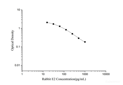 This ELISA kit uses the Competitive-ELISA principle. The micro ELISA plate provided in this kit has been pre-coated with Rabbit E2. Samples (or Standards) and Horseradish Peroxidase (HRP) linked antibody specific for Rabbit E2 are added to the micro ELISA plate wells. Rabbit E2 in samples (or standards) competes with a fixed amount of E2 on the solid phase supporter for sites on the HRP linked detection antibody specific to E2. Excess conjugate and unbound sample or standard are washed from the plate. The substrate solution is added to each well. The enzyme-substrate reaction is terminated by the addition of stop solution and the color turns yellow. The optical density (OD) is measured spectrophotometrically at a wavelength of 450±2 nm. The concentration of Rabbit E2 in the samples is then determined by comparing the OD of the samples to the standard curve.
