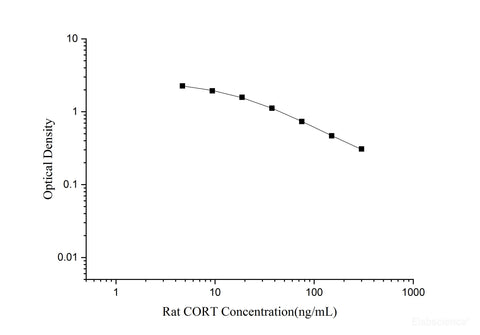 This ELISA kit uses the Competitive-ELISA principle. The micro ELISA plate provided in this kit has been pre-coated with Rat Cort. Samples (or Standards) and Horseradish Peroxidase (HRP) linked antibody specific for Rat Cort are added to the micro ELISA plate wells. Rat Cort in samples (or standards) competes with a fixed amount of Cort on the solid phase supporter for sites on the HRP linked detection antibody specific to Cort. Excess conjugate and unbound sample or standard are washed from the plate. The substrate solution is added to each well. The enzyme-substrate reaction is terminated by the addition of stop solution and the color turns yellow. The optical density (OD) is measured spectrophotometrically at a wavelength of 450±2 nm. The concentration of Rat Cort in the samples is then determined by comparing the OD of the samples to the standard curve.