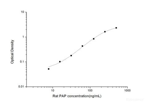 This ELISA kit uses the Sandwich-ELISA principle. The micro ELISA plate provided in this kit has been pre-coated with an antibody specific to Rat PAP. Standards or samples are added to the micro ELISA plate wells and combined with the specific antibody. Then a biotinylated detection antibody specific for Rat PAP and Avidin-Horseradish Peroxidase (HRP) conjugate are added successively to each micro plate well and incubated. Free components are washed away. The substrate solution is added to each well. Only those wells that contain Rat PAP, biotinylated detection antibody and Avidin-HRP conjugate will appear blue in color. The enzyme-substrate reaction is terminated by the addition of stop solution and the color turns yellow. The optical density (OD) is measured spectrophotometrically at a wavelength of 450 nm ± 2 nm. The OD value is proportional to the concentration of Rat PAP. You can calculate the concentration of Rat PAP in the samples by comparing the OD of the samples to the standard curve.