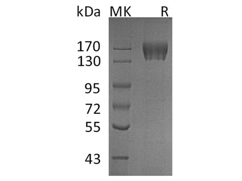 C-Kit/SCF R is a type 3 transmembrane receptor for MGF (mast cell growth factor, also known as stem cell factor). c-Kit contains 5 Ig-like C2-type (immunoglobulin-like) domains and 1 protein kinase domain. It belongs to the protein kinase superfamily and CSF-1/PDGF receptor subfamily. SCF R expression on mast cells enables them to infiltrate SCF-secreting tumors where they promote tumor growth and induce local immune suppression. SCF R is up-regulated on dendritic cells by Th2-orTh17-biasing stimuli, and it is required for subsequent dendritic cell induction of Th2 and Th17 responses. SCF R protects vascular smooth muscle cells from apoptosis and assists in the recovery of cardiac function following myocardial infarction.
