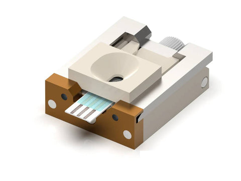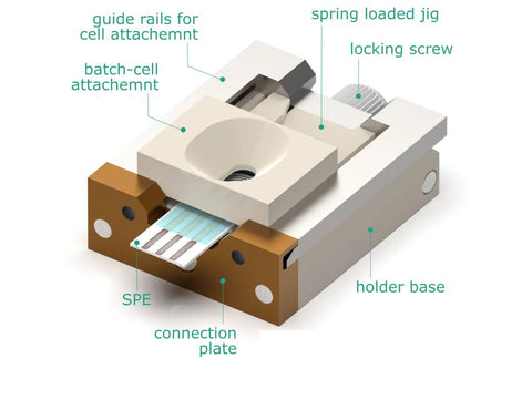 The Screen-Printed Electrode (SPE) Holder is a versatile tool designed to facilitate characterization of thin/thick film planar electrodes and electrochemical (bio)sensors. It enables experiments with nearly all available on the market screen-printed electrodes (please see compatibility table below).