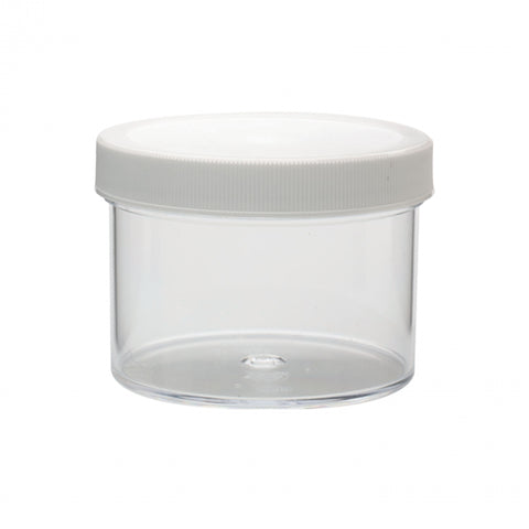 - Manufactured from polystyrene with foam PE lined polypropylene screw cap