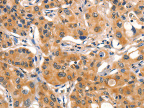 Interferon-inducible protein AIM2 (Absent in melanoma 2) is a 343 amino acid protein belonging to the HIN-200 family.Induced by IFN- , AIM2 is thought to act as a tumor suppressor by repressing NF B transcriptional activity.Localized to the nucleus, AIM2 contains one DAPIN domain and one HIN-200 domain.The DAPIN domain is composed mostly of -helixes and is a protein-protein interaction domain capable of binding other DAPIN domains.The HIN-200 domain has been shown to bind directly to DNA, which, along with the binding of another protein ASC, results in the activation of Caspase-1.