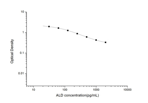 This ELISA kit uses the Competitive-ELISA principle. The micro ELISA plate provided in this kit has been pre-coated with Universal ALD. During the reaction, Universal ALD in the sample or standard competes with a fixed amount of Universal ALD on the solid phase supporter for sites on the Biotinylated Detection Ab specific to Universal ALD. Excess conjugate and unbound sample or standard are washed away, and Avidin-Horseradish Peroxidase (HRP) conjugate are added to each micro plate well and incubated. Then a TMB substrate solution is added to each well. The enzyme-substrate reaction is terminated by the addition of stop solution and the color turns from blue to yellow. The optical density (OD) is measured spectrophotometrically at a wavelength of 450 nm ± 2 nm. The concentration of Universal ALD in tested samples can be calculated by comparing the OD of the samples to the standard curve.