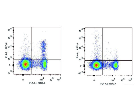 Recommended Use Each lot of this antibody is quality control tested by flow cytometric analysis. The amount of the reagent is suggested to be used 5 µL of antibody per test (million cells in 100 µL staining volume or per 100 µL of whole blood). Please check your vial before the experiment. Since applications vary, the appropriate dilutions must be determined for individual use.