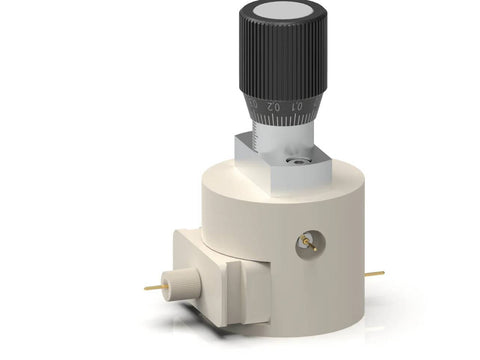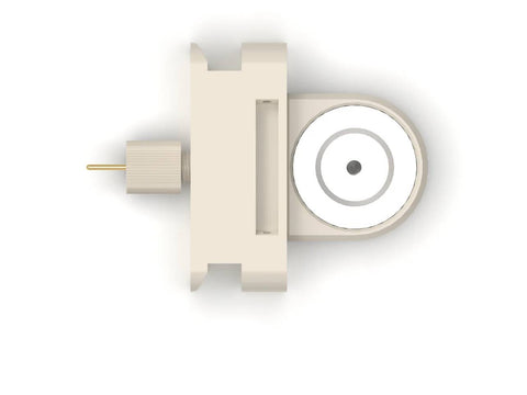 The Battery Cartridge – Three Electrode Setup consists of upper and lower electrode plungers, separator lock ring and reference electrode punch. The (default) electrode plungers are designed for planar electrodes with diameter of 18 mm and total sandwich thickness up to 2.5 mm. The diameter of separator shall be at least 2 mm larger than electrode diameter (max. 22 mm). The lock ring secures the separator in the electrode cartridge allowing easy and safe electrodes insertion, while ensuring accurate alignment. The upper and lower electrode plungers are available in various materials: 316L/317L Stainless Steel (default), copper, aluminum, nickel, gold plated nickel, etc. The punch-type reference electrode is installed from the side of the electrode cartridge. Thanks to sharp edged hole at the end of the pin the reference electrode (Li/Na/K etc.) can be easily punched from the metal foil and directly loaded into cell. The magnetic mount facilitates rapid assembly of the cartridge in the cell base For 2-electrode measurements the reference electrode feedthrough hole can be closed with the reference electrode punch.