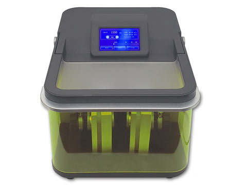 The safety cover lifts up for easy access to the sample holders and automatically locks during operation. The wrap-around design of the clear acrylic lid allows for visualization during homogenization.