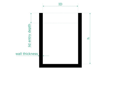 | maximum liquid volume | ID | h (GC chamber depth) | wall thickness | number of ports |