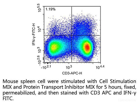 Elabscience® Cell Stimulation MIX Kit is a mixture of Phorbol 12-Myristate 13-Acetate (PMA) and Ionomycin, which can induce various cell activation and secrete cytokines. The activated cell supernatant can be used to detect cytokines by immunological methods. It is possible to add Protein Transport Inhibitor MIX [E-CK-A013] at an appropriate time to detect cytokines by flow cytometry.