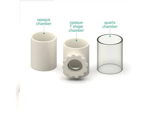 Those are the replacement chambers for Photo-Bio-EC Reactor - Photo-bioelectrochemical reactor 2 x 50 mL. The opaque chamber and the opaque T shape chamber are both made out of a glass-based composite compatible with bio-electrochemical applications.