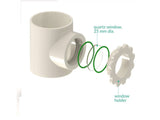 The opaque chamber is typically used in a cathode compartment where an interaction with light is not needed. The opaque T shape chamber is equipped with a round quartz window which limits the irradiation aperture to 3.63 cm2. The quartz chamber transmits light incident on the photo anode from any direction.