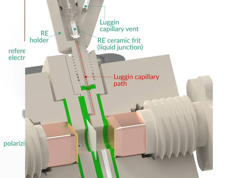 Various polarizing electrodes materials are suitable for this cell including noble metal plates, Glassy Carbon plates and Boron-Doped Diamond plates.