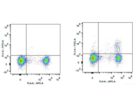 | Recommended Use | Each lot of this antibody is quality control tested by flow cytometric analysis. Please check your vial before the experiment. Since applications vary, the appropriate dilutions must be determined for individual use. We suggest each investigator should titrate the reagent to obtain optimal results [The recommended concentration is 0.1-1 μg/106 cells in 100 μL volume]. |
