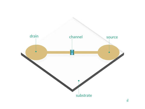This is a stationary solution electrochemical cell designed to measure characteristics of electrolyte-gated (or solution-gated) transistors using liquid or gel electrolyte. Measured transistor sample can be fabricated on a rigid or flexible flat substrate (not included in the setup) with conducting thin film source and drain, and a layer of conducting or semiconducting channel material. The sample is loaded from the bottom via magnetic or screw mount, while gate is mounted in a top casing. A reference electrode can also be mounted in the top casing in case it is needed to control the channel/electrolyte interfacial potential or perform an electrochemical pre-treatment on the channel material. Source and drain electrodes can be accessed through cut-outs in a cell bottom casing, using needle probes or toothless crocodile clips. The cell elements are constructed with materials that are inert to the sample (glass, PEEK and Fluorocarbons). It well fits aqueous (FKM/EPDM O-Rings) and organic solvent (FFKM O-Rings) electrolyte requirements. The construction is gas-tight and can be used when the removal and exclusion of contaminants such as oxygen and water is required by bubbling of an inert gas through the electrolyte.