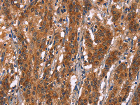 Gephyrin is a microtubule-associated protein highly expressed in brain and localized to neuronal postsynaptic membranes. Gephyrin is essential for the postsynaptic localization of the inhibitory glycine receptor and is thought to anchor the receptor to subsynaptic microtubules. The protein is expressed in most mammalian tissues with predominant expression in brain. At least five additional splice variants of Gephyrin ranging in molecular weight have been identified in rat and human brain tissue.