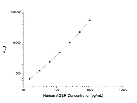 This CLIA kit uses the Sandwich-CLIA principle. The micro CLIA plate provided in this kit has been pre-coated with an antibody specific to Human AGER. Standards or samples are added to the micro CLIA plate wells and combined with the specific antibody. Then a biotinylated detection antibody specific for Human AGER and Avidin-Horseradish Peroxidase (HRP) conjugate are added successively to each micro plate well and incubated. Free components are washed away. The substrate solution is added to each well. Only those wells that contain Human AGER, biotinylated detection antibody and Avidin-HRP conjugate will appear fluorescence. The Relative light unit (RLU) value is measured by the Chemiluminescence immunoassay analyzer. The RLU value is positively associated with the concentration of Human AGER. You can calculate the concentration of Human AGER in the samples by comparing the RLU value of the samples to the standard curve.