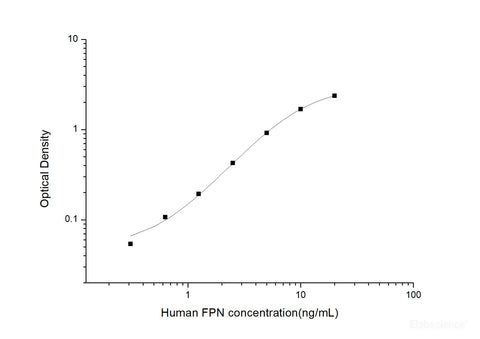 This ELISA kit uses the Sandwich-ELISA principle. The micro ELISA plate provided in this kit has been pre-coated with an antibody specific to Human FPN. Standards or samples are added to the micro ELISA plate wells and combined with the specific antibody. Then a biotinylated detection antibody specific for Human FPN and Avidin-Horseradish Peroxidase (HRP) conjugate are added successively to each micro plate well and incubated. Free components are washed away. The substrate solution is added to each well. Only those wells that contain Human FPN, biotinylated detection antibody and Avidin-HRP conjugate will appear blue in color. The enzyme-substrate reaction is terminated by the addition of stop solution and the color turns yellow. The optical density (OD) is measured spectrophotometrically at a wavelength of 450 nm ± 2 nm. The OD value is proportional to the concentration of Human FPN. You can calculate the concentration of Human FPN in the samples by comparing the OD of the samples to the standard curve.