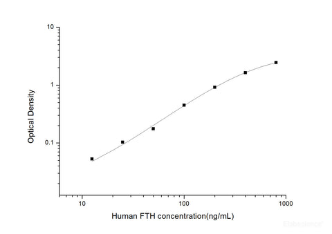 This ELISA kit uses the Sandwich-ELISA principle. The micro ELISA plate provided in this kit has been pre-coated with an antibody specific to Human FTH. Standards or samples are added to the micro ELISA plate wells and combined with the specific antibody. Then a biotinylated detection antibody specific for Human FTH and Avidin-Horseradish Peroxidase (HRP) conjugate are added successively to each micro plate well and incubated. Free components are washed away. The substrate solution is added to each well. Only those wells that contain Human FTH, biotinylated detection antibody and Avidin-HRP conjugate will appear blue in color. The enzyme-substrate reaction is terminated by the addition of stop solution and the color turns yellow. The optical density (OD) is measured spectrophotometrically at a wavelength of 450 nm ± 2 nm. The OD value is proportional to the concentration of Human FTH. You can calculate the concentration of Human FTH in the samples by comparing the OD of the samples to the standard curve.