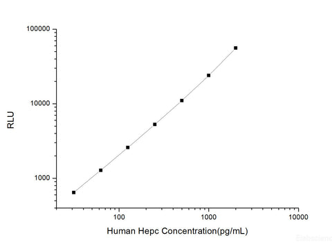 This CLIA kit uses the Sandwich-CLIA principle. The micro CLIA plate provided in this kit has been pre-coated with an antibody specific to Human Hepc. Standards or samples are added to the micro CLIA plate wells and combined with the specific antibody. Then a biotinylated detection antibody specific for Human Hepc and Avidin-Horseradish Peroxidase (HRP) conjugate are added successively to each micro plate well and incubated. Free components are washed away. The substrate solution is added to each well. Only those wells that contain Human Hepc, biotinylated detection antibody and Avidin-HRP conjugate will appear fluorescence. The Relative light unit (RLU) value is measured by the Chemiluminescence immunoassay analyzer. The RLU value is positively associated with the concentration of Human Hepc. You can calculate the concentration of Human Hepc in the samples by comparing the RLU value of the samples to the standard curve.