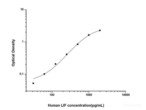 This ELISA kit uses the Sandwich-ELISA principle. The micro ELISA plate provided in this kit has been pre-coated with an antibody specific to Human LIF. Standards or samples are added to the micro ELISA plate wells and combined with the specific antibody. Then a biotinylated detection antibody specific for Human LIF and Avidin-Horseradish Peroxidase (HRP) conjugate are added successively to each micro plate well and incubated. Free components are washed away. The substrate solution is added to each well. Only those wells that contain Human LIF, biotinylated detection antibody and Avidin-HRP conjugate will appear blue in color. The enzyme-substrate reaction is terminated by the addition of stop solution and the color turns yellow. The optical density (OD) is measured spectrophotometrically at a wavelength of 450 nm ± 2 nm. The OD value is proportional to the concentration of Human LIF. You can calculate the concentration of Human LIF in the samples by comparing the OD of the samples to the standard curve.