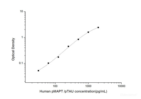 This ELISA kit uses the Sandwich-ELISA principle. The micro ELISA plate provided in this kit has been pre-coated with an antibody specific to Human pMAPT/pTAU. Standards or samples are added to the micro ELISA plate wells and combined with the specific antibody. Then a biotinylated detection antibody specific for Human pMAPT/pTAU and Avidin-Horseradish Peroxidase (HRP) conjugate are added successively to each micro plate well and incubated. Free components are washed away. The substrate solution is added to each well. Only those wells that contain Human pMAPT/pTAU, biotinylated detection antibody and Avidin-HRP conjugate will appear blue in color. The enzyme-substrate reaction is terminated by the addition of stop solution and the color turns yellow. The optical density (OD) is measured spectrophotometrically at a wavelength of 450 nm ± 2 nm. The OD value is proportional to the concentration of Human pMAPT/pTAU. You can calculate the concentration of Human pMAPT/pTAU in the samples by comparing the OD of the samples to the standard curve.