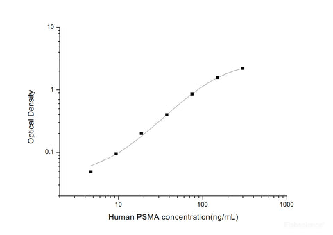 This ELISA kit uses the Sandwich-ELISA principle. The micro ELISA plate provided in this kit has been pre-coated with an antibody specific to Human PSMA. Standards or samples are added to the micro ELISA plate wells and combined with the specific antibody. Then a biotinylated detection antibody specific for Human PSMA and Avidin-Horseradish Peroxidase (HRP) conjugate are added successively to each micro plate well and incubated. Free components are washed away. The substrate solution is added to each well. Only those wells that contain Human PSMA, biotinylated detection antibody and Avidin-HRP conjugate will appear blue in color. The enzyme-substrate reaction is terminated by the addition of stop solution and the color turns yellow. The optical density (OD) is measured spectrophotometrically at a wavelength of 450 nm ± 2 nm. The OD value is proportional to the concentration of Human PSMA. You can calculate the concentration of Human PSMA in the samples by comparing the OD of the samples to the standard curve.