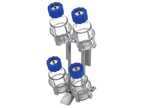 Holder for attaching up to four 250 ml sample bottles to the bioreactor vessel, allowing for simultaneous autoclaving.