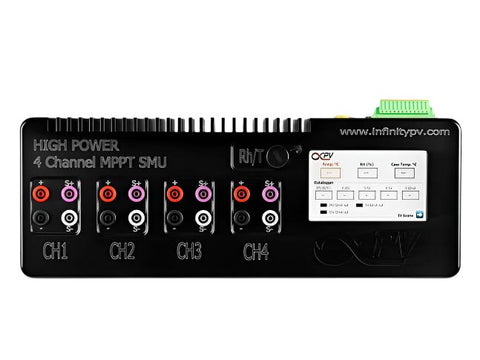 The infinityPV Source Measure Units offer cutting edge technology for precise solar cell characterization and research, redefining precision and efficiency in testing. With multiple input channels, customizable power options, and intuitive software, they provide unparalleled flexibility for optimizing solar cell devices and modules. The Source Measure Units offer full maximum power point tracking (MPPT) on all channels, coupled with 4-quadrant operation and 16-bit resolution across multiple ranges, ensuring high accuracy and versatility. Beyond these core features, the Source Measure Unit is equipped with additional channels allowing for easy integration of a temperature/relative humidity probe as well as a 5-channel general purpose datalogger. The datalogger supports a wide range of inputs (4-20 mA, 0-1 V, 0-5 V, 0-10 V to Pt100) and outputs (5 V, 12 V, and 24 V), enabling comprehensive data collection and user formatting.