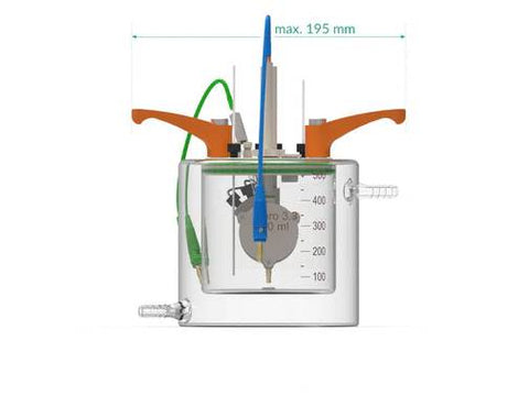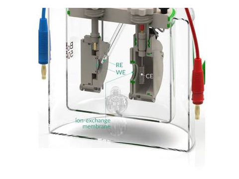 The cell elements are constructed with materials that are inert to the sample (glass and PEEK). It well fits aqueous (FKM/EPDM O-Rings) and organic solvent (FFKM O-Rings) electrolyte requirements. The construction is gas-tight and can be used when the removal and exclusion of contaminants such as oxygen and water is required by bubbling of an inert gas through the electrolyte.