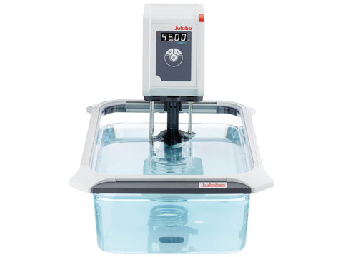 JULABO CORIO™ Immersion Heating Circulator combinations with transparent or stainless steel bath tanks for routine laboratory tasks. Units include bright LED display and easy operation. A quick connect bath clamp is included.