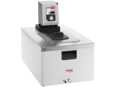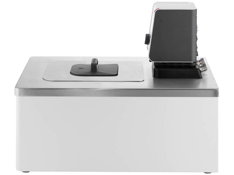 DYNEO™ heating circulators are suitable for temperature applications with circulation to an external apparatus or immersing a device in the bath tank for temperatures to 200 °C. The DYNEO™ DD circulator incorporates easy change-over for control of fluid circulation internally or externally. Unit fittings M16x1 male threaded adapters including a pair of 8 and 12 mm hose barbs. Systems include insulated stainless-steel tanks with integrated drain valve. Color TFT display with central rotary knob controller, multi-lingual interface, integrated programmer, Pt100 port for external temperature control. USB connection for external PC control and data-logging; Digital option includes RS232 port; analog option includes analog interface for voltage or current control. PID temperature control provides ±0.01 °C stability. Infinitely variable centrifugal pump capacity of 8-27 L/min with pressure to 1.5-10.2 psi. Class III (FL) according to DIN 12876-1.