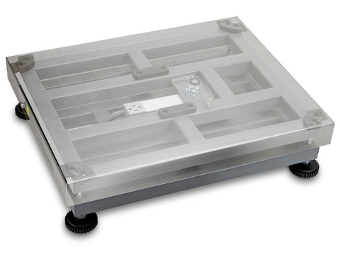 Platform: weighing plate of stainless steel, painted steel base, silicone-coated aluminium load cell with protection against dust and water splashes IP65.