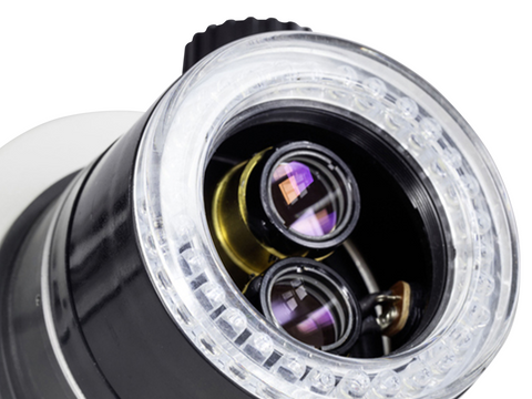 A stereo zoom microscope, also known as a dissecting microscope, provides a 3-dimensional or "stereo" image when looking through the microscope. The zoom feature on the stereo zoom microscope provides a range of viewing possibilities, and is the single feature that is most useful when selecting a stereoscope. The zoom knob on a stereo microscope provides magnification within a large range (for example, 0.7x - 4.5x) and ultimately allows the ability to view every single magnification (7x, 8x, 9x, etc.) when zooming in on the microscopy sample. Stereo zoom microscopes allow quick zoom from low to high magnification. Using a stereo zoom microscope makes it simple to view a sample in the entire field of view, then focus and zoom in on a particular part of interest.