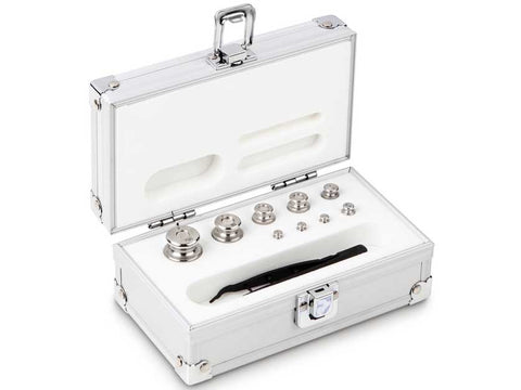Weight set, F2, 1 g - 100 g, Knob, stainless steel fine turned (OIML), in aluminum case