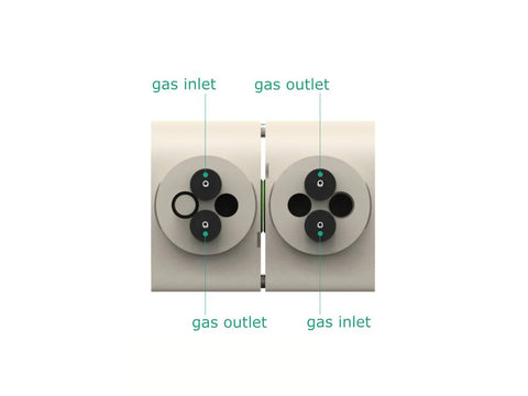 This is a horizontally mounted, double compartment electrochemical H-Cell. The cell elements are made of PEEK. It well fits aqueous (FKM/EPDM O-Rings) and organic solvent (FFKM O-Rings) electrolyte requirements. The construction is gas-tight having two separate chambers, each equipped with gas inlet and outlet. This allows bubbling the solution and evacuating gases. Chambers are separated with an ion-exchange membrane (e.g. DuPont’s Nafion® membrane), so the electrochemical products appearing at working and counter electrode do not affect the opposite electrode.
