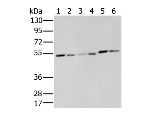 Calculated MW 54 kDa
