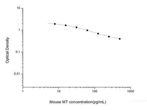 This ELISA kit uses the Competitive-ELISA principle. The micro ELISA plate provided in this kit has been pre-coated with MT. During the reaction, MT in the sample or standard competes with a fixed amount of MT on the solid phase supporter for sites on the Biotinylated Detection Ab specific to MT. Excess conjugate and unbound sample or standard are washed away, and Avidin-Horseradish Peroxidase (HRP) conjugate are added to each micro plate well and incubated. Then a TMB substrate solution is added to each well. The enzyme-substrate reaction is terminated by the addition of stop solution and the color turns from blue to yellow. The optical density (OD) is measured spectrophotometrically at a wavelength of 450 nm ± 2 nm. The concentration of MT in tested samples can be calculated by comparing the OD of the samples to the standard curve.