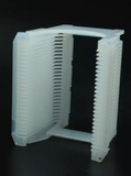 High quality 2 inch wafer carrier box is made with perfluoroalkoxy (PFA) material and can hold up to 25 of 2" wafers. It has open sidewall with wash slots in side walls. It is a wafer carrier with high temperature stability (heat up to 200℃) and high resistance to acid. It is widely used to store and transport wafers during wafer fabrication cleaning process.