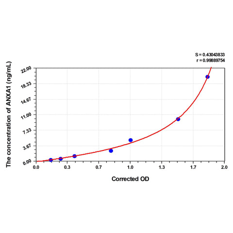 Test principle The test principle applied in this kit is Sandwich enzyme immunoassay. The microtiter plate provided in this kit has been pre-coated with an antibody specific to Human ANXA1, and the Human ANXA1 standard plate wells that pre-coated using protein-related techniques are provided separately. Standard/Sample Diluent Buffer or samples are added to the appropriate microtiter plate wells ,then added a HRP-conjugated antibody specific to Human ANXA1. After TMB substrate solution is added, only those wells that contain Human ANXA1 and HRP-conjugated antibody will exhibit a change in color. The enzyme-substrate reaction is terminated by the addition of sulphuric acid solution and the color change is measured spectrophotometrically at a wavelength of 450nm ± 10nm. The concentration of Human ANXA1 in the samples is then determined by comparing the OD of the samples to the standard curve.